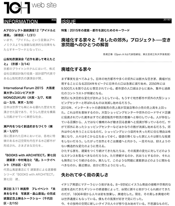 馬場正尊氏(Open A ltd.代表取締役、東北芸術工科大学准教授)による「廃墟化する家々と「あしたの郊外」プロジェクト──空き家問題へのひとつの解答」という記事が、10+1 web siteに掲載されています。