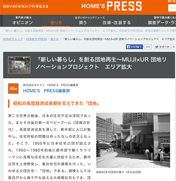 「「新しい暮らし」を創る団地再生~MUJI×UR 団地リノベーションプロジェクト エリア拡大」という記事が、HOME’S PRESSに掲載されています。