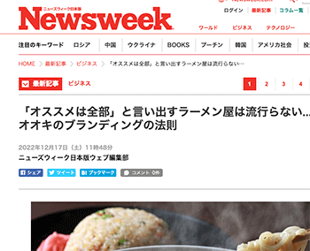 「「オススメは全部」と言い出すラーメン屋は流行らない…佐藤オオキのブランディングの法則」という記事が、ニューズウィーク日本版に掲載されています。