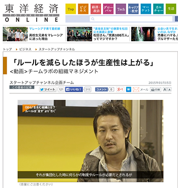 →『「ルールを減らしたほうが生産性は上がる」(後編) | スタートアップチャンネル | 東洋経済オンライン 』