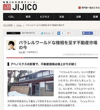 ジャーナル中山聡氏(不動産鑑定士)による記事「パラレルワールドな様相を呈す不動産市場の今」が、 JIJICOに掲載されています。