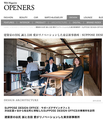 建築家の谷尻誠氏と吉田愛氏がリノベーションしたSUPPOSE DESIGN OFFICE東京新事務所を紹介している記事が、OPENERSに掲載されています。