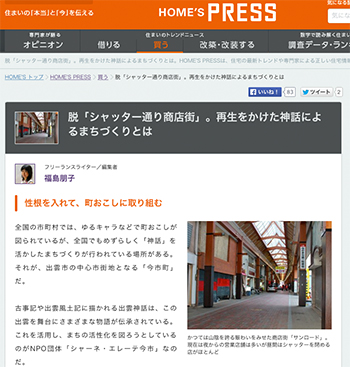 「脱「シャッター通り商店街」。再生をかけた神話によるまちづくりとは」という出雲市の中心市街地となる「今市町」の事例を取り上げている記事が、HOME’S PRESSに掲載されています。