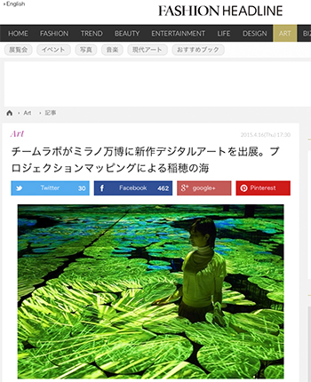 →『チームラボがミラノ万博に新作デジタルアートを出展。プロジェクションマッピングによる稲穂の海』