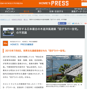 「現存する日本最古の木造洋風建築「旧グラバー住宅」の不思議」という学芸員の横山さんに話をきいたという記事が、HOME’S PRESSに掲載されています。