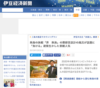 「熱海の旅館「界 熱海」の隈研吾設計の風呂が話題に 「負ける」建築生かした景観人気 」という記事が、伊豆経済新聞に掲載されています。