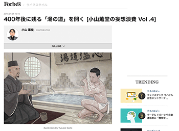 ジャーナル「400年後に残る「湯の道」を開く [小山薫堂の妄想浪費 Vol .4] 」という放送作家・脚本家の小山薫堂氏のコラムが、フォーブス ジャパンに掲載されています。