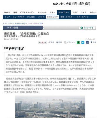 「東京五輪、「会場変更組」の着地点 東京大改造マップ2016-2020(2)」という東京五輪施設に関する記事が、日本経済新聞に掲載されています。