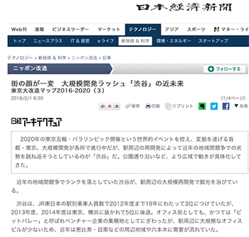 まちづくり「街の顔が一変 大規模開発ラッシュ「渋谷」の近未来 」という記事が、日本経済新聞に掲載されています。