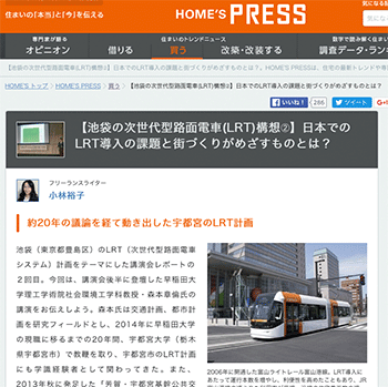 東京、池袋のLRT(次世代型路面電車システム)計画をテーマにした講演会『池袋LRT(路面電車)計画が描く未来』をレポートしている記事が、HOME’S PRESSに掲載されています。