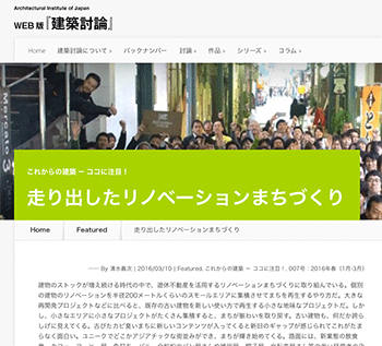 ●ニュースコラムと建築本清水義次氏による記事「走り出したリノベーションまちづくり」が、建築討論WEBに掲載されています。