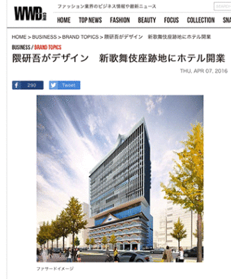 →『隈研吾がデザイン 新歌舞伎座跡地にホテル開業』