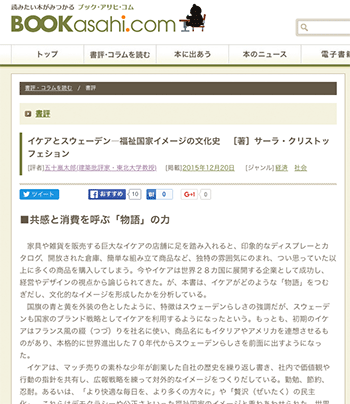 ●本(pick up books)サーラ・クリストッフェション氏による「イケアとスウェーデン―福祉国家イメージの文化史」の書評がBOOK.asahi.comにて掲載されています。