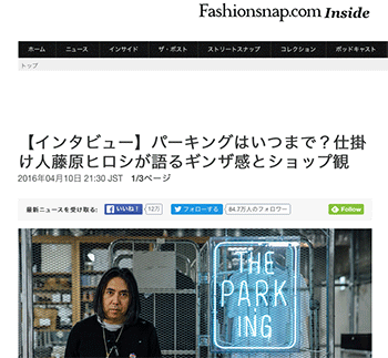 「ザ・パーキング 銀座」について、藤原ヒロシ氏にインタビューしている記事が、Fashionsnap.comに掲載されています。
