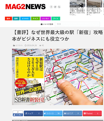 田村圭介氏、上原大介氏による「新宿駅はなぜ1日364万人をさばけるのか」の書評がまぐまぐニュース!にて掲載されています。