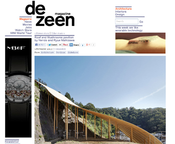 「西沢立衛+nendo: 森の屋根ときのこ」展にて京都造形芸術大学敷地内に展示中の西沢立衛氏とnendoのデザインによる屋外作品の紹介記事がdezeenに掲載されています。