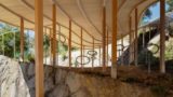 Architect Ryue Nishizawa teamed up with design studio Nendo to create a hillside pavilion filled with stools designed to look like troops of wild mushrooms.