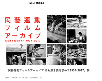 「民藝運動フィルムアーカイブ 名もなき美を求めて1934-2017」が2017年1月27日から有楽町のATELIER MUJIにて開催されるそうです。
