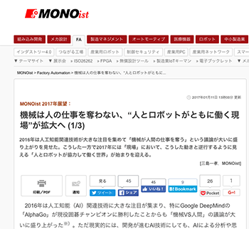 「機械は人の仕事を奪わない、“人とロボットがともに働く現場”が拡大へ」という記事が、MONOistに掲載されています。