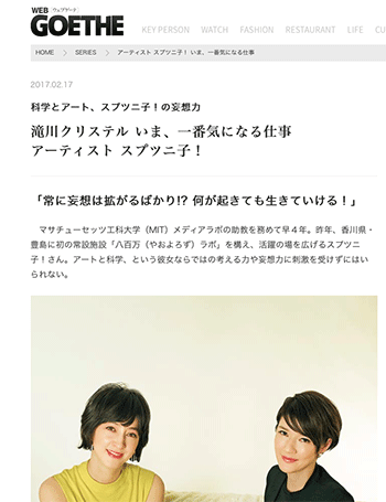 滝川クリステル氏とスプツニ子!氏による対談記事が、ウェブゲーテに掲載されています。