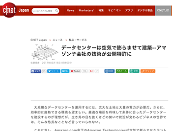 ●ニュースコラムと建築本Amazon Technologiesが考案した空気で膨らませたテント風の構造物内にデータセンターを作るデータセンター設置技術について取り上げている記事がCNET Japanに掲載されています。