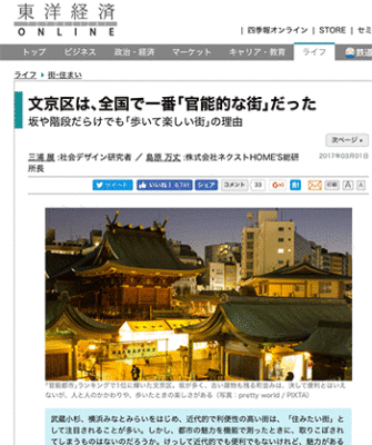 「文京区は、全国で一番「官能的な街」だった」という三浦展氏による記事が、東洋経済オンライン に掲載されています。