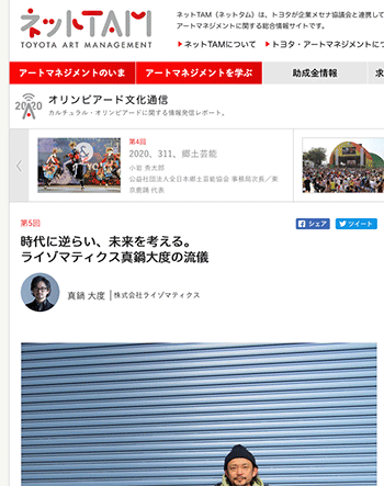 「時代に逆らい、未来を考える。ライゾマティクス真鍋大度の流儀」という真鍋大度氏にインタビューしている記事が、ネットTAMに掲載されています。