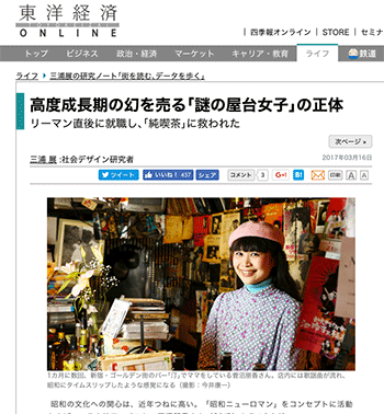 ●ニュースコラムと建築本「高度成長期の幻を売る「謎の屋台女子」の正体」という三浦展氏による記事が、東洋経済オンラインに掲載されています。