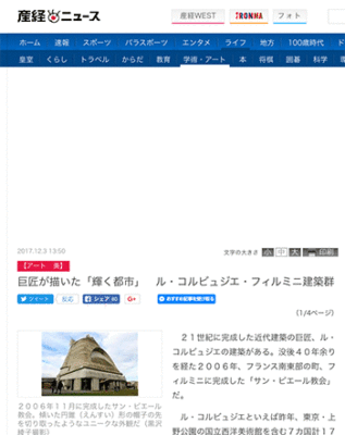 「巨匠が描いた「輝く都市」 ル・コルビュジエ・フィルミニ建築群」という記事が、産経ニュースに掲載されています。