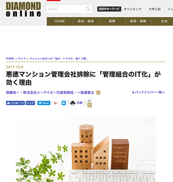 ジャーナル「悪徳マンション管理会社排除に「管理組合のIT化」が効く理由」という記事が、ダイヤモンド・オンラインに掲載されています。