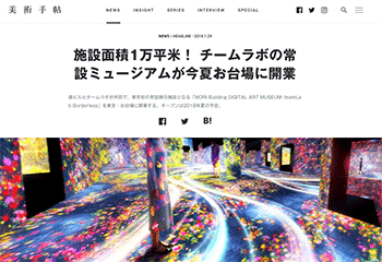 森ビルとチームラボが共同で、東京初の常設展示施設となる「MORI Building DIGITAL ART MUSEUM: teamLab Borderless」が東京・お台場に2018年夏に開業することを取り上げている記事が、美術手帖に掲載されています。