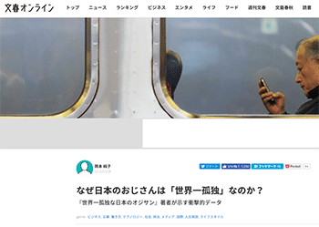 ジャーナル「なぜ日本のおじさんは「世界一孤独」なのか?『世界一孤独な日本のオジサン』著者が示す衝撃的データ」という記事が文春オンラインに掲載されています。