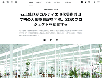 パリのカルティエ現代美術財団で建築家の石上純也の個展「石上純也―FREEING ARCHITECTURE」が、2018年3月30日から開催されるそうです。