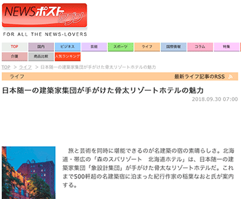 「日本随一の建築家集団が手がけた骨太リゾートホテルの魅力」という記事が、NEWSポストセブンに掲載されています。