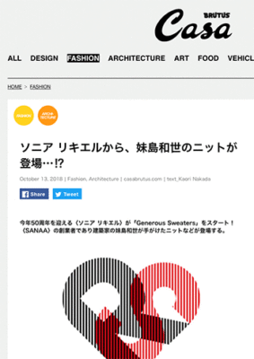 「ソニア リキエルから、妹島和世のニットが登場…⁉︎」という記事が、Casa BRUTUSに掲載されています。