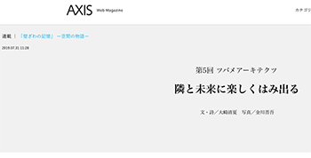 隣と未来に楽しくはみ出る / 第5回 ツバメアーキテクツ /連載 | 「壁ぎわの記憶」 ー空間の物語ー (AXIS) 建築 2019.10.06 「隣と未来に楽しくはみ出る」という連載記事が、AXISに掲載されています。 →『隣と未来に楽しくはみ出る』 https://www.axismag.jp/posts/2019/07/139844.html