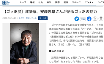 「【ゴッホ展】建築家、安藤忠雄さんが語るゴッホの魅力」という安藤忠雄さんに話を聞いている記事が、産経ニュースに掲載されています。