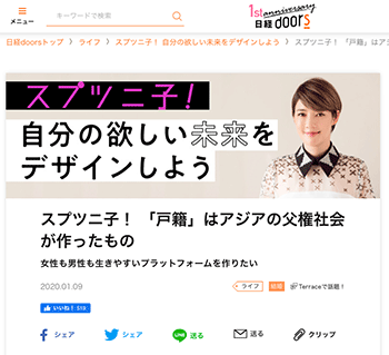 ジャーナル「スプツニ子! 「戸籍」はアジアの父権社会が作ったもの」というスプツニ子!さんによる記事が、日経doorsに掲載されています。