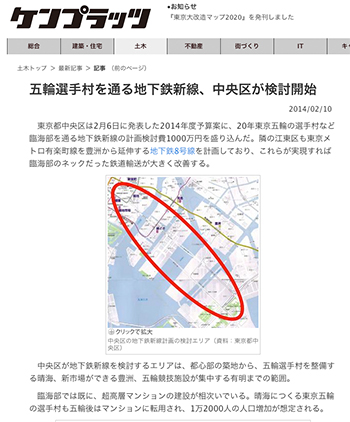 →『五輪選手村を通る地下鉄新線、中央区が検討開始』