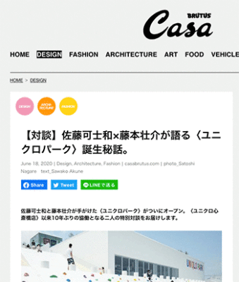佐藤可士和氏と藤本壮介氏が手がけた「ユニクロパーク」についての対談記事が、カーサ ブルータスに掲載されています。