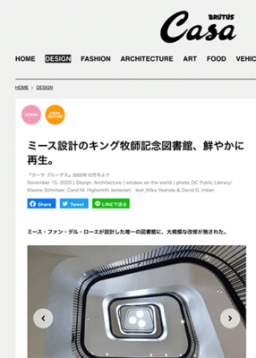 「ミース設計のキング牧師記念図書館、鮮やかに再生。」というミース・ファン・デル・ローエが設計した唯一の図書館の改修計画デザインについて取り上げている記事が、カーサ ブルータスに掲載されています。