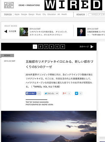 都市イベント・構想「五輪都市リオデジャネイロにみる、新しい都市づくりの5つのテーゼ」というブラジル、リオデジャネイロのまちづくりの例を取り上げた記事がWIRED.jpに掲載されています。