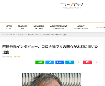 →『隈研吾氏インタビュー、コロナ禍で人の関心が木材に向いた理由』
