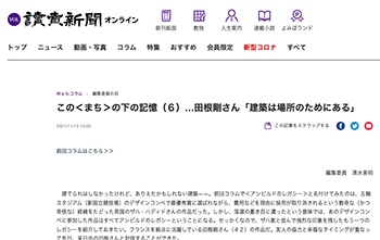 「この<まち>の下の記憶(6)…田根剛さん「建築は場所のためにある」」という記事が、読売新聞オンラインに掲載されています。