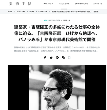 「建築家・吉阪隆正の多岐にわたる仕事の全体像に迫る。「吉阪隆正展 ひげから地球へ、パノラみる」が東京都現代美術館で開催」という東京都現代美術館にて2022年3月19日から開催される展覧会「吉阪隆正展 ひげから地球へ、パノラみる」について取り上げている記事が、美術手帖に掲載されています。