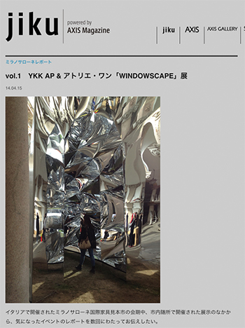 イタリアで開催されたミラノサローネ国際家具見本市にて展示されていた、YKK APとアトリエ・ワンによる、窓の持つ魅力を伝える「WINDOWSCAPE」と題した展示作品をレポートした記事がjikuに掲載されています。