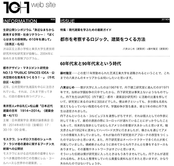 10+1 web siteの「現代建築を学ぶための最新ガイド」特集ページにて、八束はじめ氏(建築家)と藤村龍至氏(建築家)による対談をまとめた記事「都市を考察するロジック、建築をつくる方法」が掲載されています。