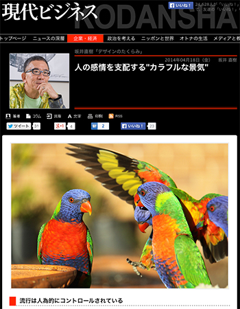 ジャーナル坂井直樹氏(コンセプター)によるコラム「人の感情を支配する”カラフルな景気”」が、現代ビジネスに掲載されています。