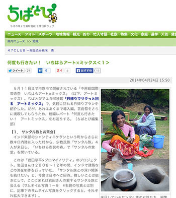 5月11日まで千葉県市原市で開催されている「中房総国際芸術祭 いちはらアート×ミックス」について現地レポートした記事「何度も行きたい! いちはらアート×ミックス」が、 千葉日報ウェブに掲載されています。