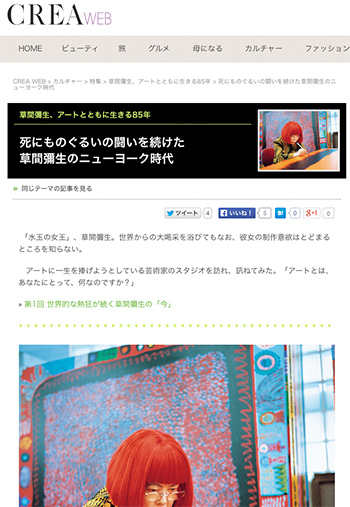 草間彌生氏(前衛彫刻家、画家、小説家)のスタジオを訪れ、その歩みを語ってもらったというインタビュー記事がCREA WEBに掲載されています。